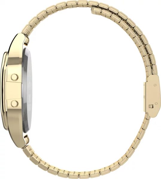 Ocelové pouzdro hodinek o velikosti 34 mm je opatřeno zlatou povrchovou úpravou. Černý číselník s retro nádechem zdobí výrazný červený motiv kultovní hry. Uvnitř něj je umístěn digiální číselník s Indigo…