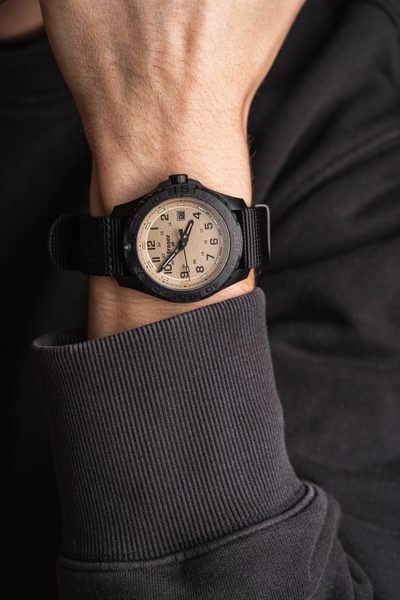 Pánské hodinky Traser P96 OdP Color Sand Nato Black vychází z oblíbených modelů Traser P96 Outdoor Pioneer Evolution. Zajímavostí u tohoto modelu je využití různých barevných tritiových bodů. Na ciferníku se tak střídá zelená, oranžová a modrá barva.
