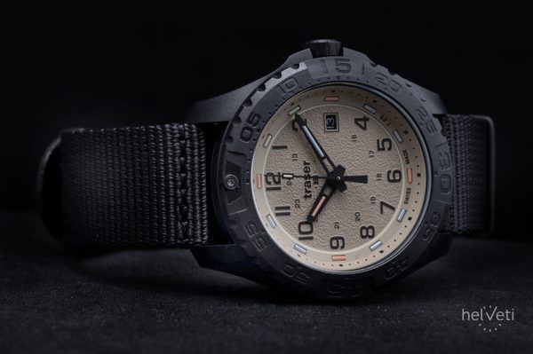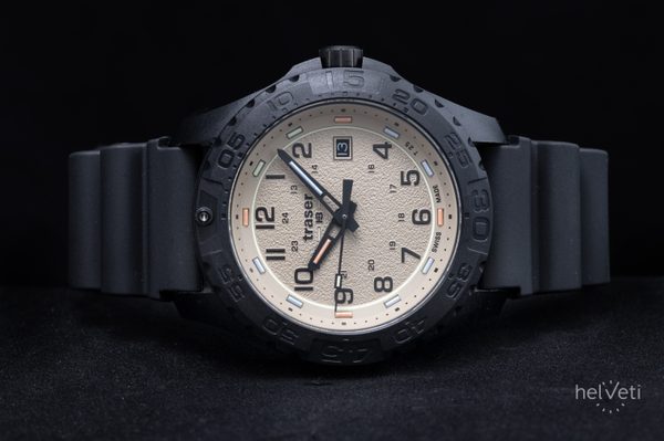 Pánské hodinky Traser P96 OdP Color Sand Rubber Black vychází z oblíbených modelů Traser P96 Outdoor Pioneer Evolution. Zajímavostí u tohoto modelu je využití různých barevných tritiových bodů. Na ciferníku se tak střídá zelená, oranžová a modrá barva.