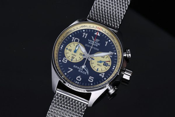 Pánské hodinky Vostok Europe Space Race Chrono Line 6S21-325A667B patří do modelové řady Space Race. SSSR a USA soutěžilo o převahu v kosmických letech. Začalo to vypuštěním umělé družice v roce 1957, pokračovalo robotickými vesmírnými sondami k Měsíci, Venuši a Marsu, což vyvrcholilo vysláním lidí na oběžnou dráhu Země a nakonec na Měsíc. Vesmírná mise Apollo-Sojuz z roku 1975 byla symbolem spolupráce mezi oběma stranami a ukončením vesmírného závodu.
