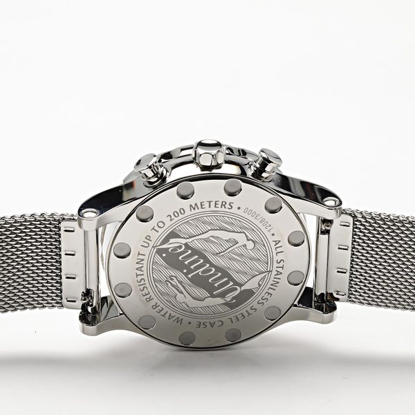Pouzdro hodinek Vostok Europe Undine VK64-515A523B je vyrobeno z ušlechtilé oceli. Uvnitř se skrývá japonský bateriový strojek Seiko VK64. Ten disponuje stopkami a ukazatelem data. Subčíselník na pozici 3 slouží jako ukazatel času ve formátu 24 hodin. Číselník chrání tvrzené…